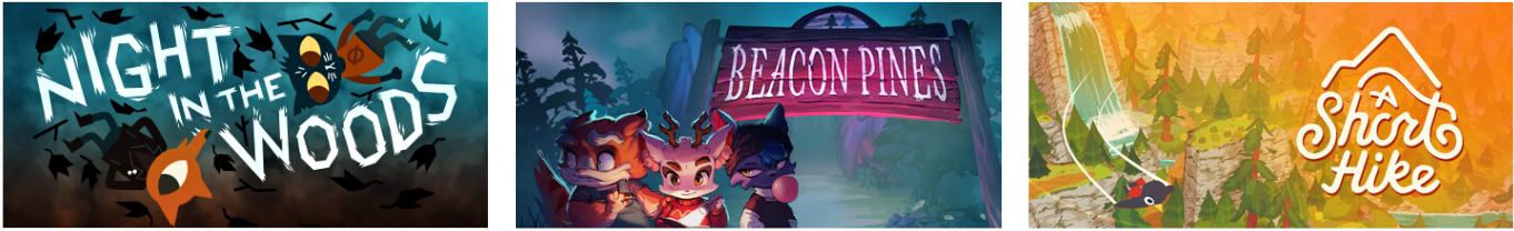 Think Night in the Woods with a touch of A Short Hike.